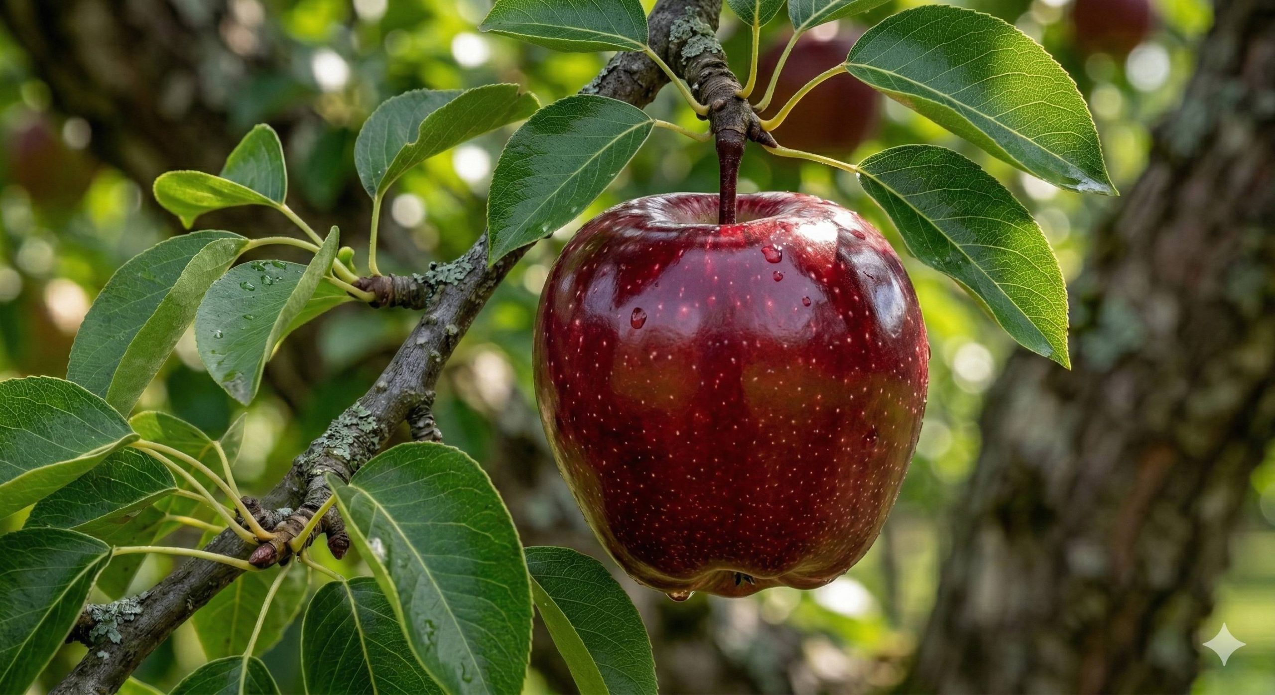 Manzana roja oscura, crujiente, dulce. Conservación de 9 a 12 meses.