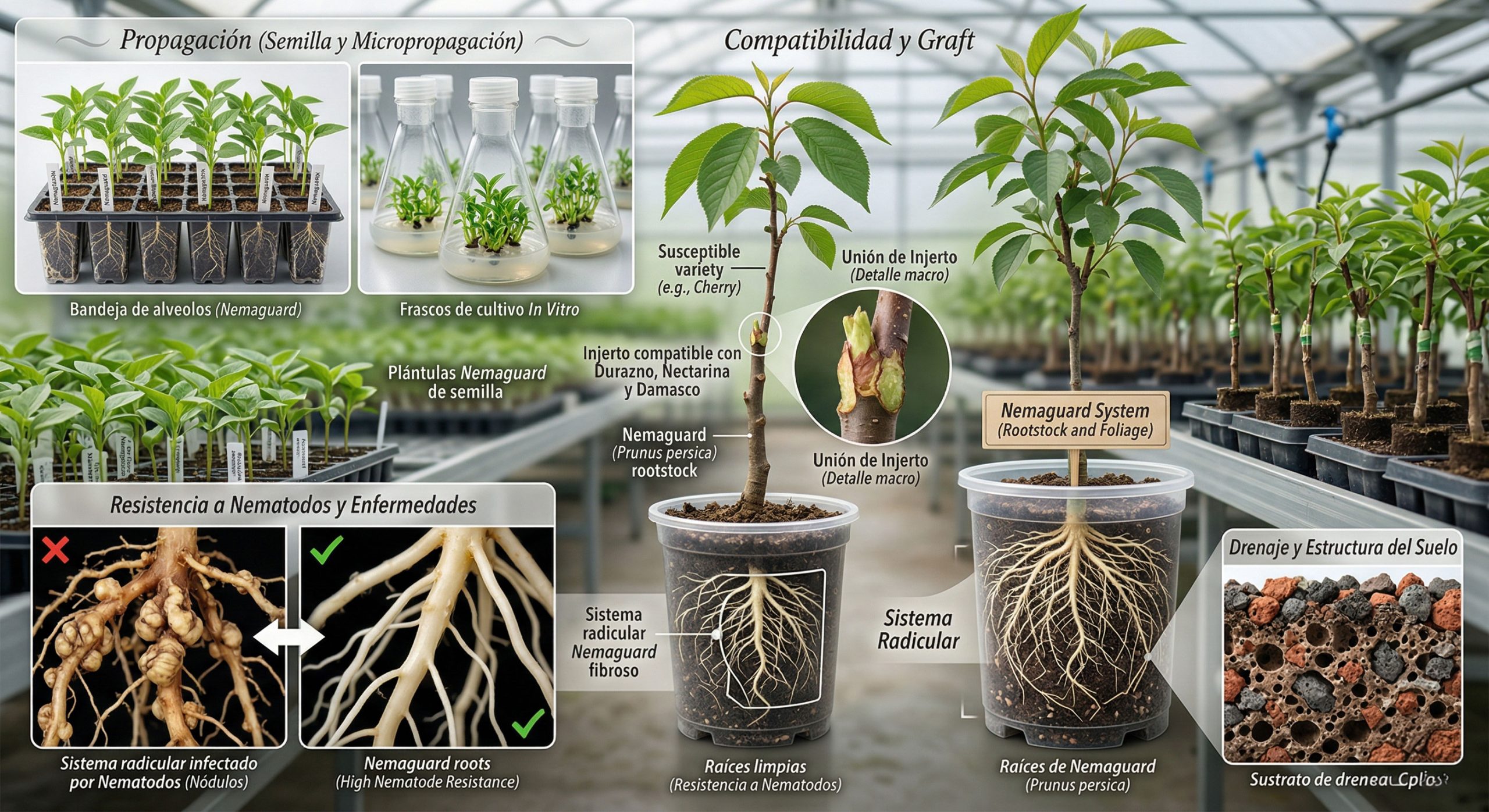 Muy buena propagación por semilla y micropropagación. Compatible con duraznos, nectarines, damascos. Sensible a asfixia y Phytophthora. Requiere buen drenaje. Alta resistencia a nematodos agalladores.